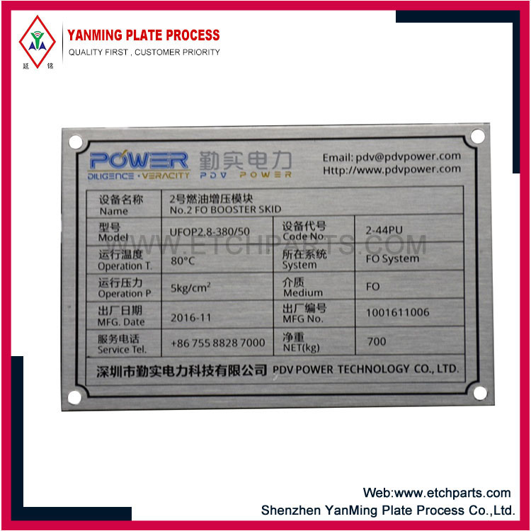 Yanming® anodizatutako aluminiozko izenplates aluminiozkoak dira, ekoizpen prozesua anodizatu ondoren, kalitate oneko eta kalitate oneko eta kalitate onekoak izan ondoren.